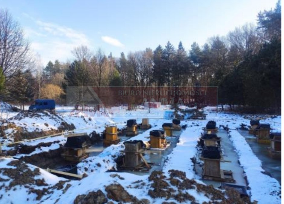 Nieruchomość z rozpoczętą budową budynku mieszkalnego jednorodzinnego, wszystkie wpisy w dzienniku budowy wykonywane na bieżąco. W przypadku kupna konieczność przepisania pozwolenia na budowę i dokończenie budowy lub rozbiórka istniejących elementów.
