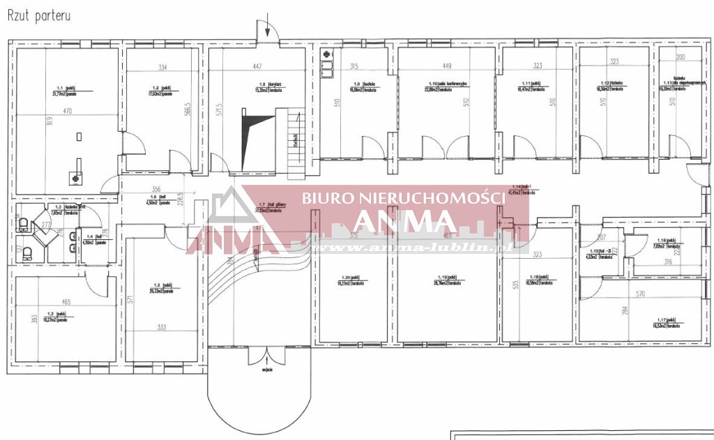 - Budynek biurowy o pow. 1112,6 m2, podpiwniczony, 1-piętrowy,
